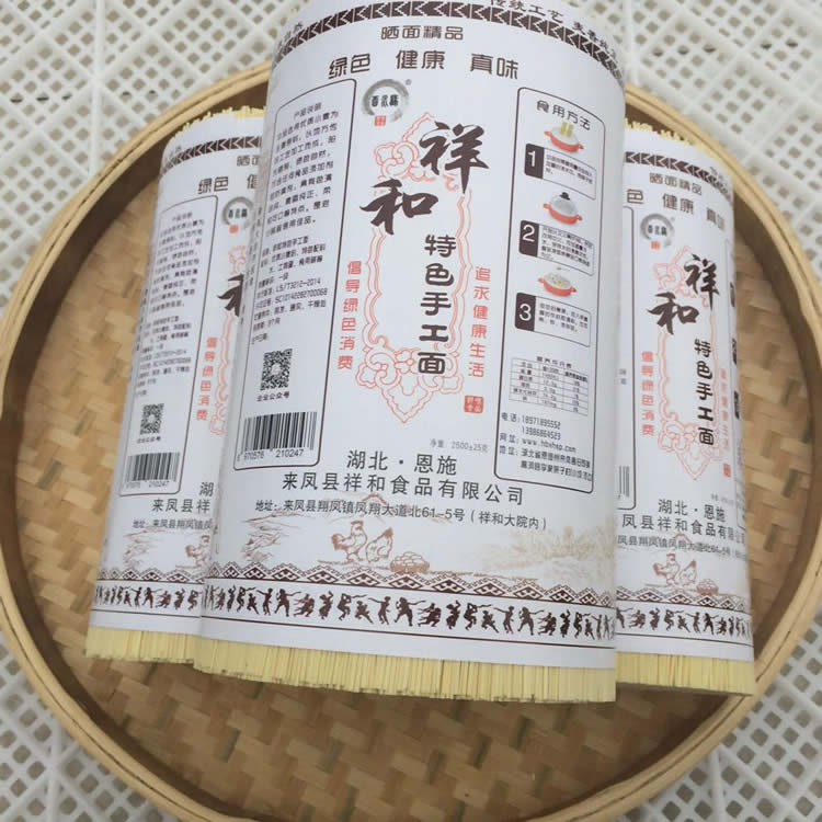 加入特级小麦粉,传统工艺,阳光晒制,不含添加剂和防腐剂,具有色清味绝,柔润可口等特点